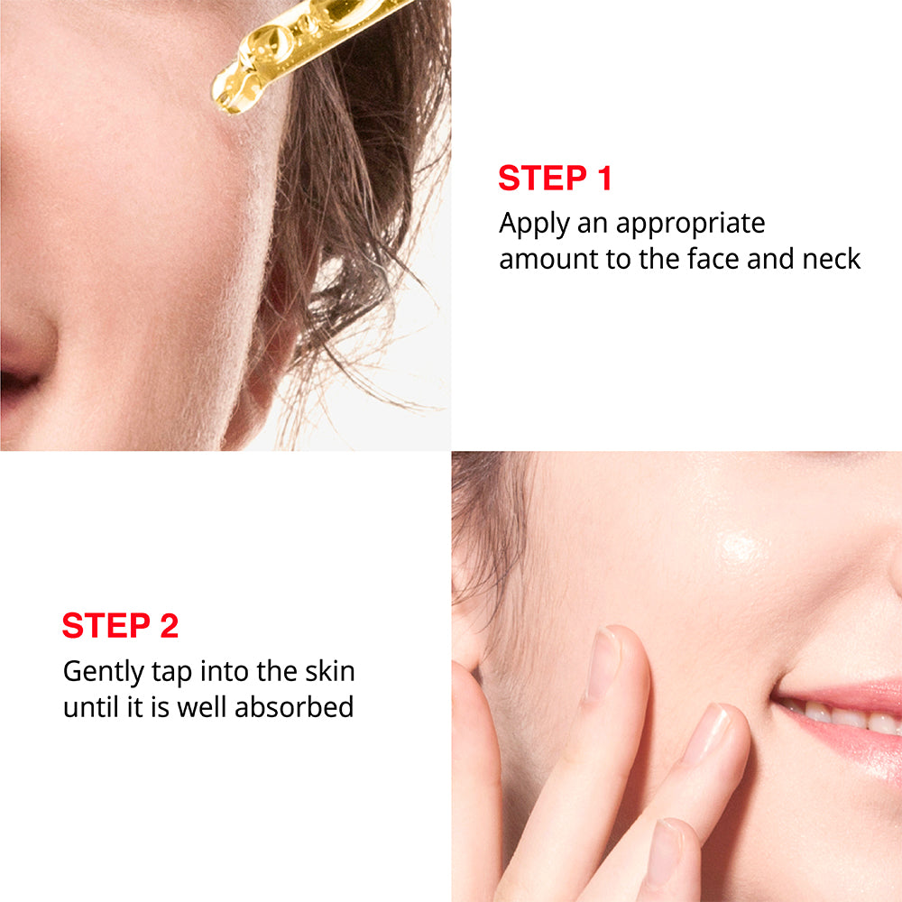 Apply an appropriate amount to your face and neck. Gently tap into the skin until it is well absorbed.